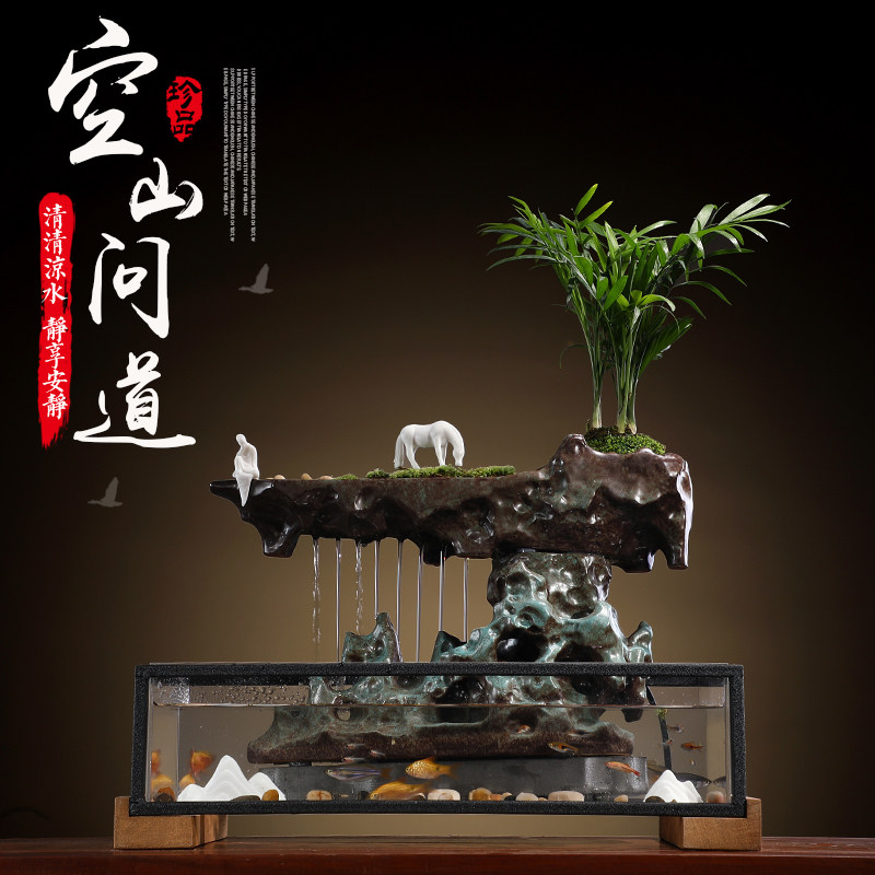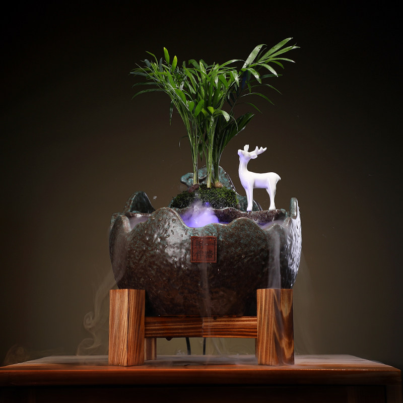 The empty mountain asked (giving the green plant little stone) all the way (deer) to accompany (giving the atomizer green planting) to view the moon (whole set)