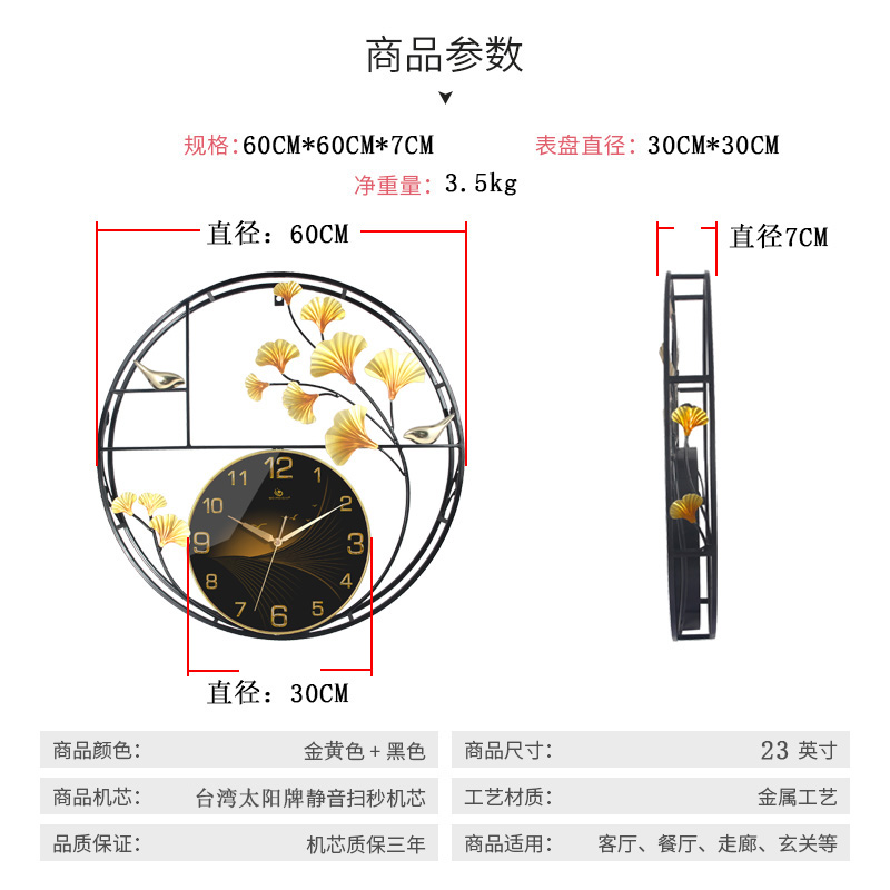 Modern simple fashion household silent quartz clock Creative living room personality wall clock Atmospheric new Chinese clock
