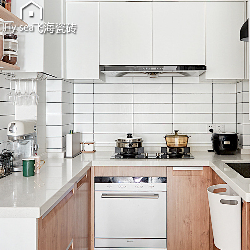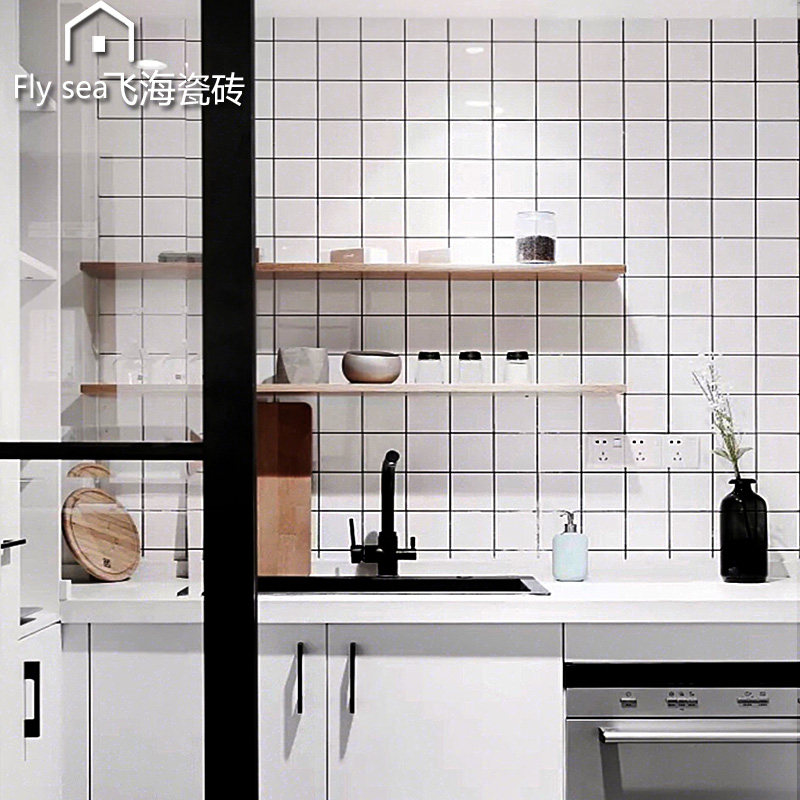 Nordic kitchen bathroom small white brick tile 300×600 black and white checkered brick bread brick toilet balcony wall brick