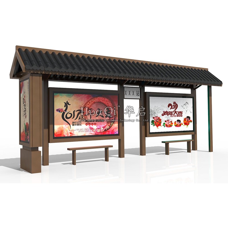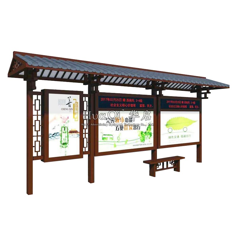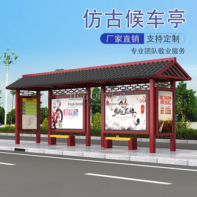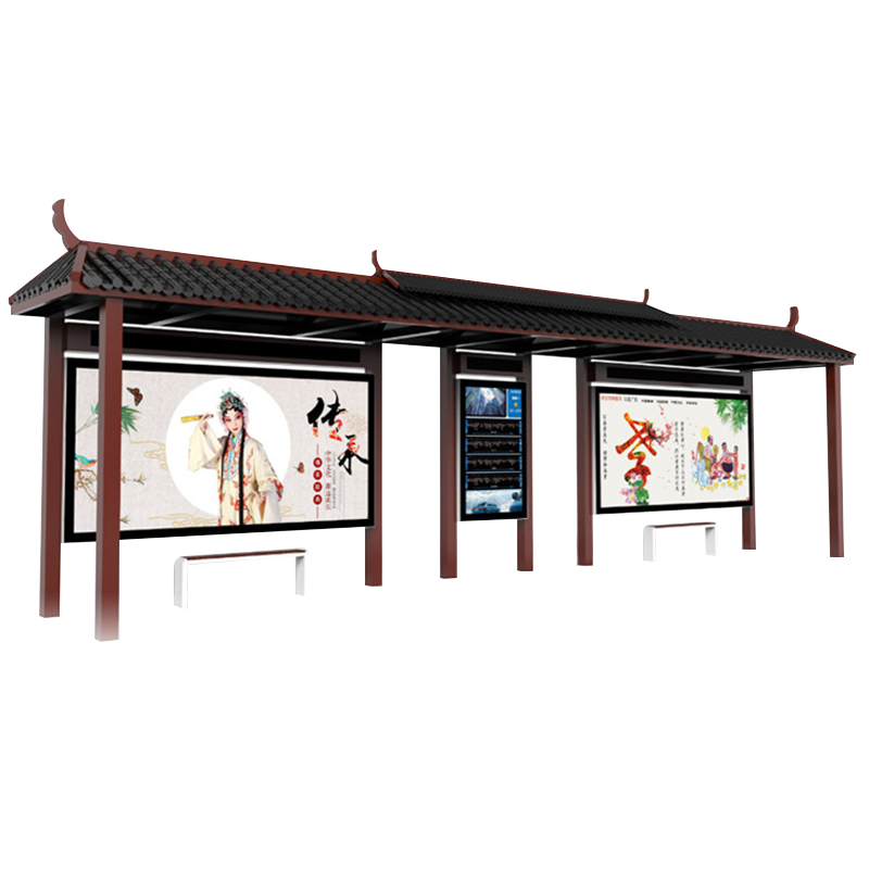 Imitation ancient waiting car kiosk manufacturer direct marketing custom profile solar intelligent rolling stainless steel bus station table recruiting station