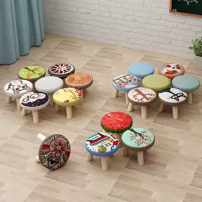 Stool Household bench Modern simple shoe stool Fashion creative solid wood square stool dining stool Fabric adult small chair
