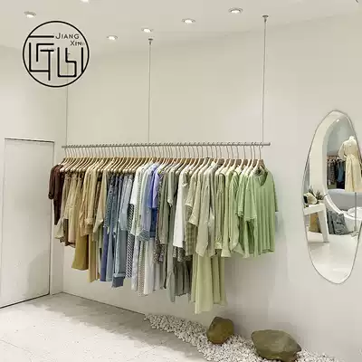 Clothing store wire hanger suspended ceiling display rack wall shelf new hanging stainless steel hanging shelf