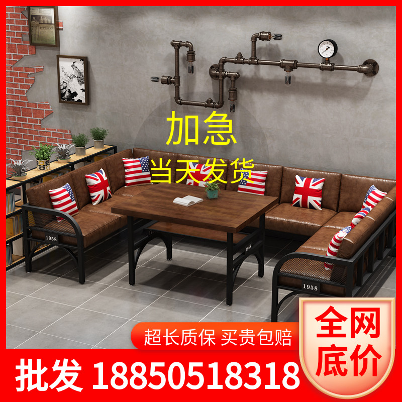 Industrial style clear bar bar sofa card seat dining room barbecue hot pot shop retro wrought iron tavern commercial table and chair combination
