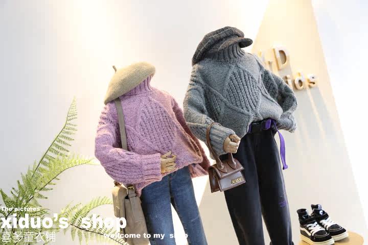 Non-refundable 2020 winter new girls' clothing retro high-necked twist thick needle wide version dropped shoulders lazy pullover sweater