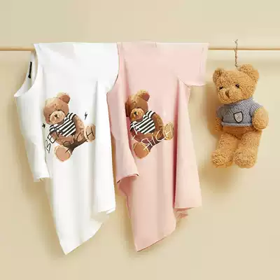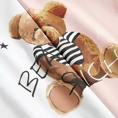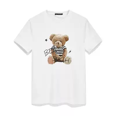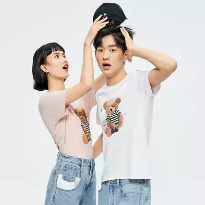 Taiping Bird Men's Ole bear print couple shirt summer short sleeve men's Korean T-shirt breathable cotton tide