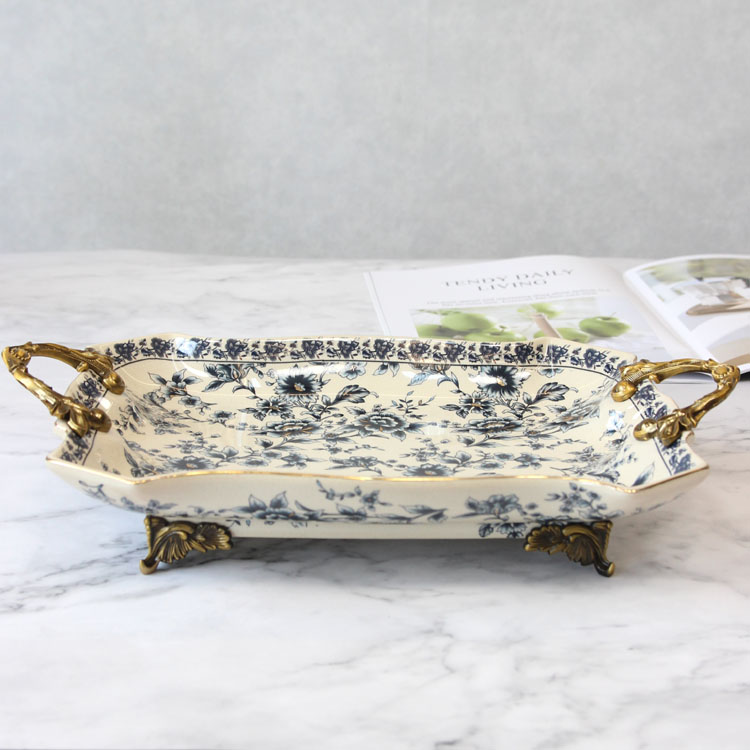 Eurostyle lavish ceramic fruit tray American luxury Villa Prototype room New Chinese tea table Soft decorations hem-Taobao
