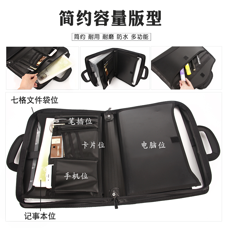 Kangba F6911 handbag a4 file bag zip waterproof multilayer information bag document affairs meeting package