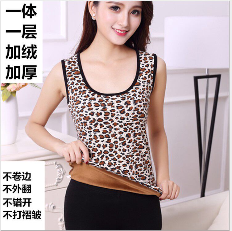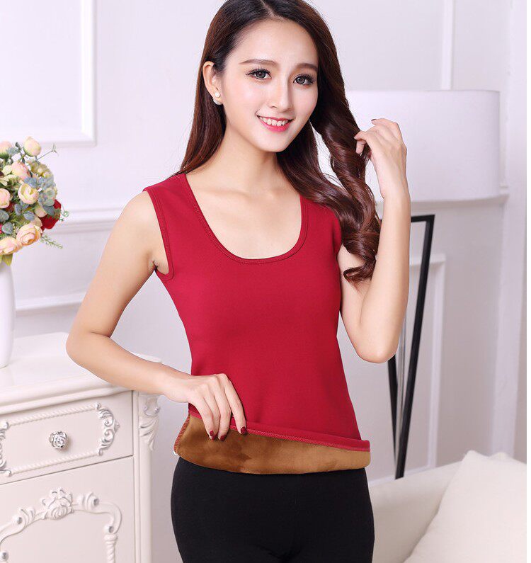 Warm Vest Woman Thickened and velvety cashless Shoulder Round Cotton Close-fitting Underwear Black Big Code Beating Bottom for Winter