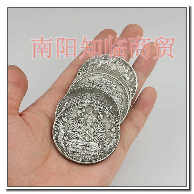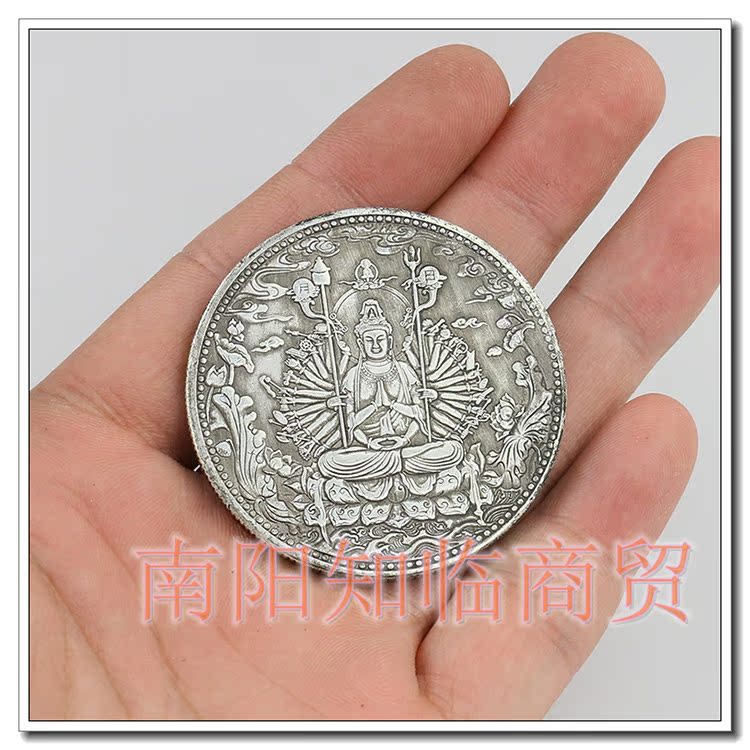 Antique made old brass silver plated silver round silver Yuan reliefs with thousands of hands Guanyin's heart and ancient play with silver coins