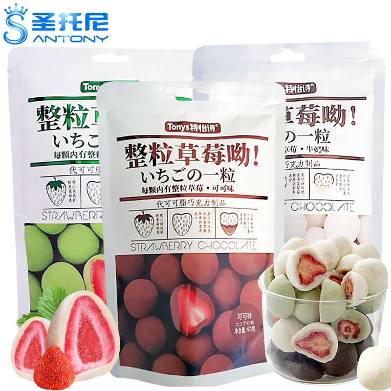 The whole strawberry sandwich matcha milk chocolate 60g * 6 bags of net red snacks (cocoa butter)