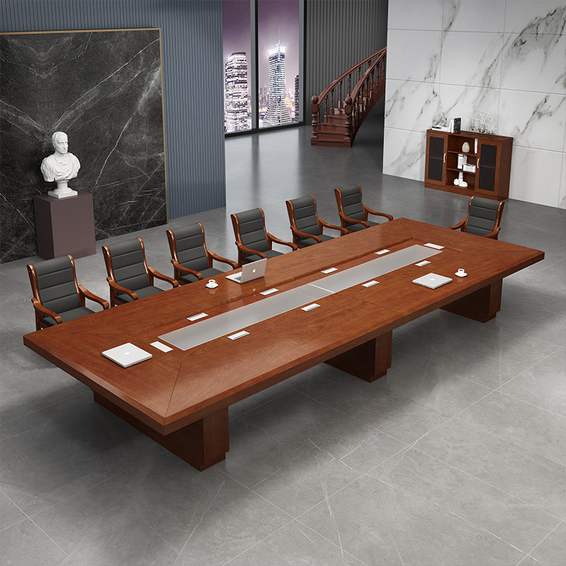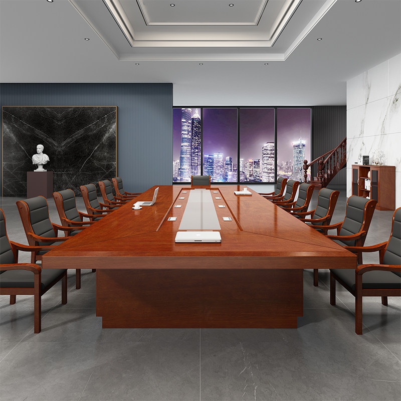 Paint desk baking varnish solid wood conference table large long table and chair combination fashion modern new Chinese style meeting table