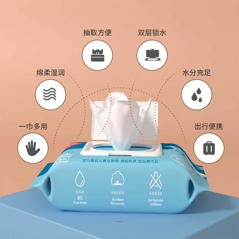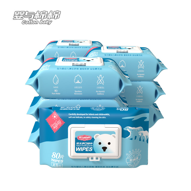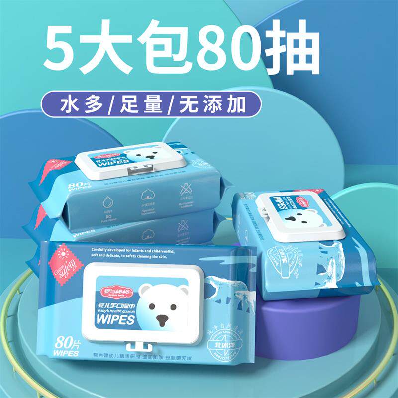 (5 packs X 80 pumps)Baby and Cotton Cotton Arctic Ocean household wipes Special for newborn hands and mouths with lid Treasure baby special price