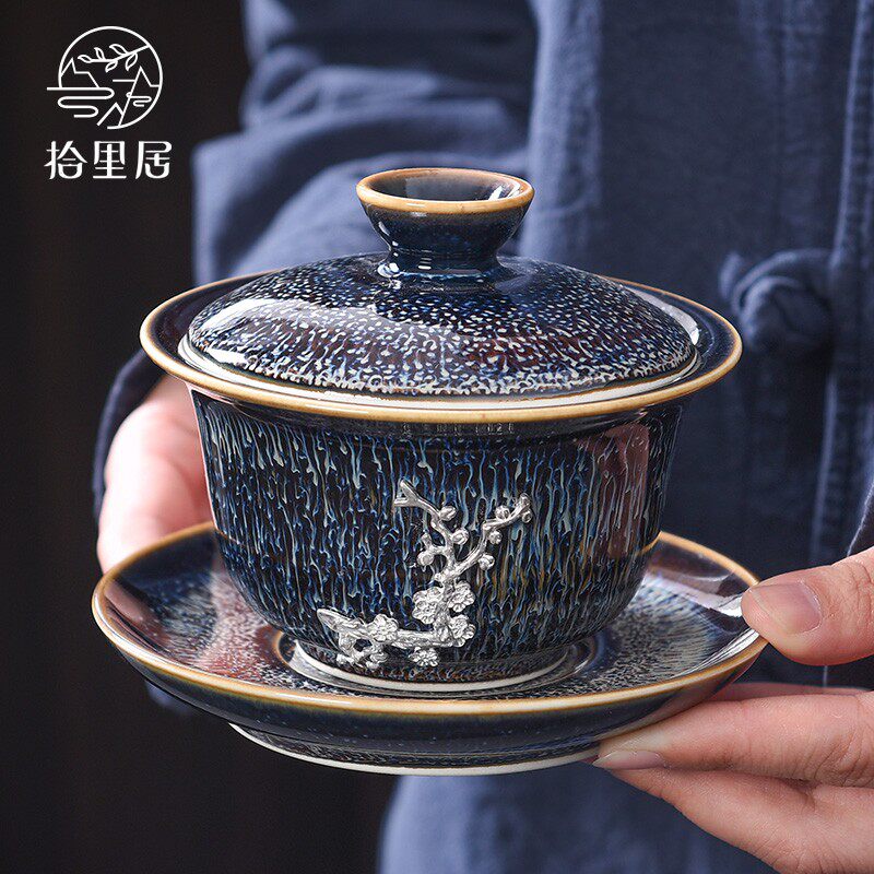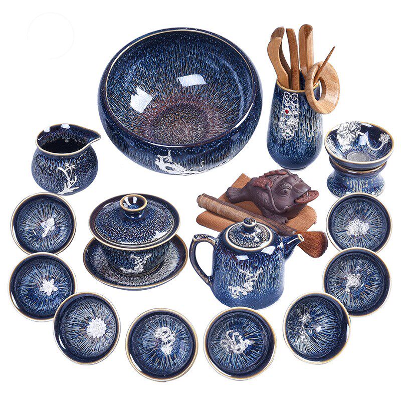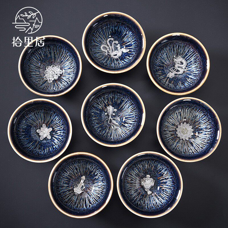 Shiliju Jingdezhen Lan silk tea set set set home set of silver-inlaid starry Tea Teapot tea set