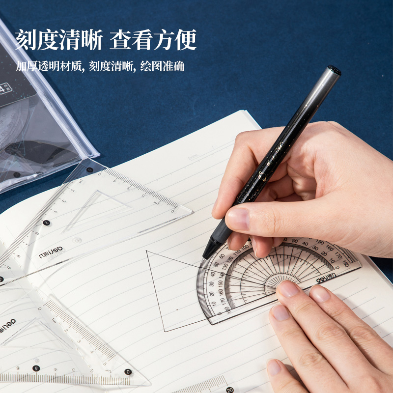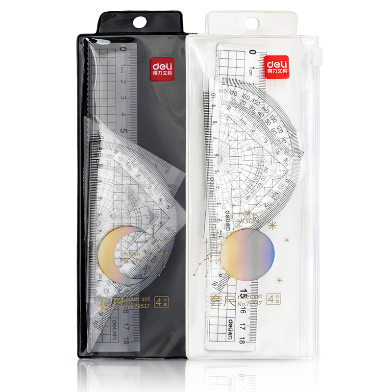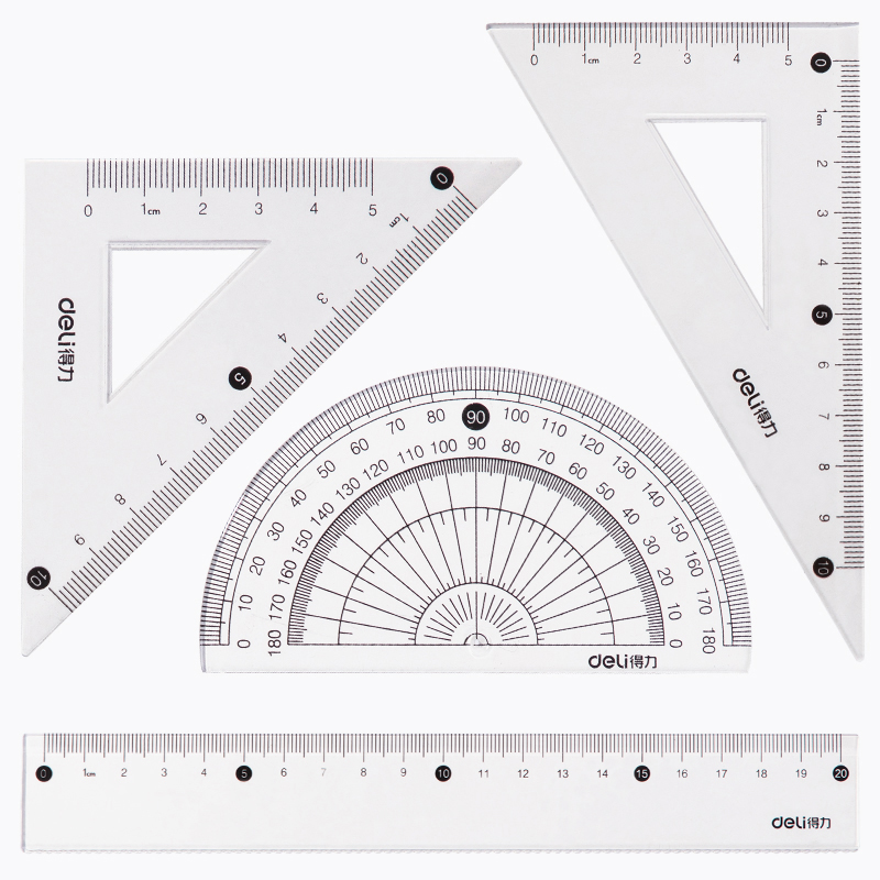 Able 79517 student sleeve ruler ruler for four sets of elementary school children with sleeve ruler Ruler triangular ruler Protractor suit thickened transparent PS material Children multifunction sleeve ruler