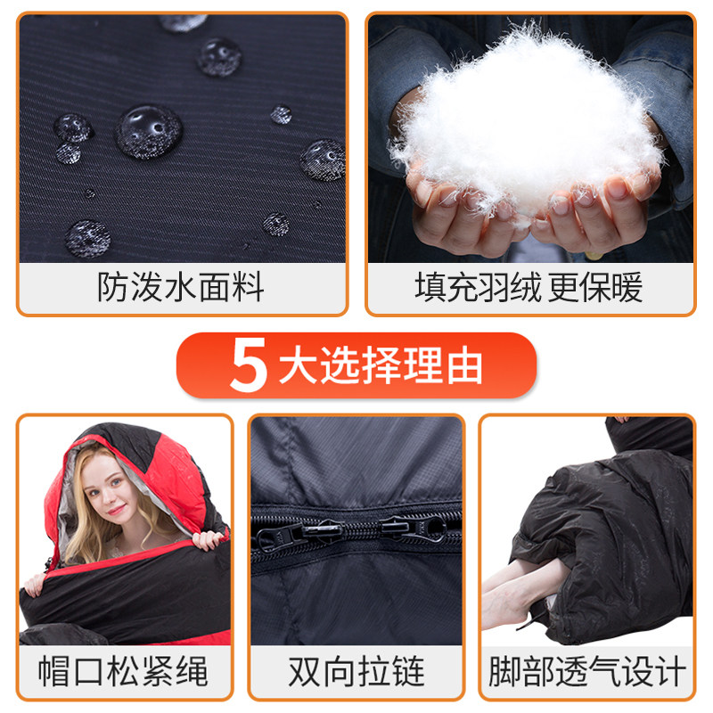 Down Sleeping Bag Adults Winter Plus Suede Thickening Indoor outdoor travel Camping Warm and cold-proof single portable
