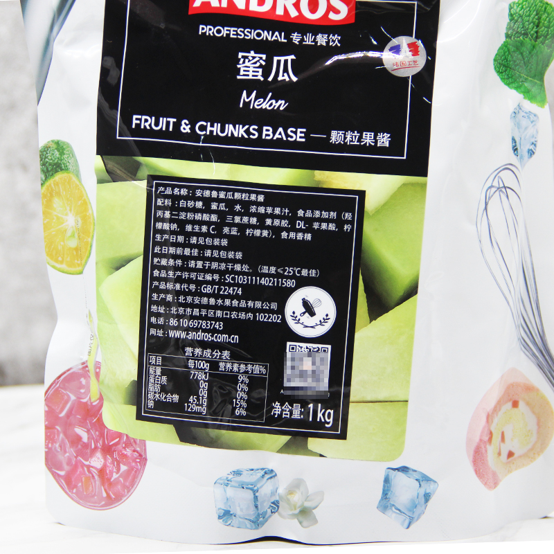 Andros Andrew Honey melon granular jam Bar sauce Jam Jam Jam Jam Jam Jam Jam Iced drink sauce 1kg