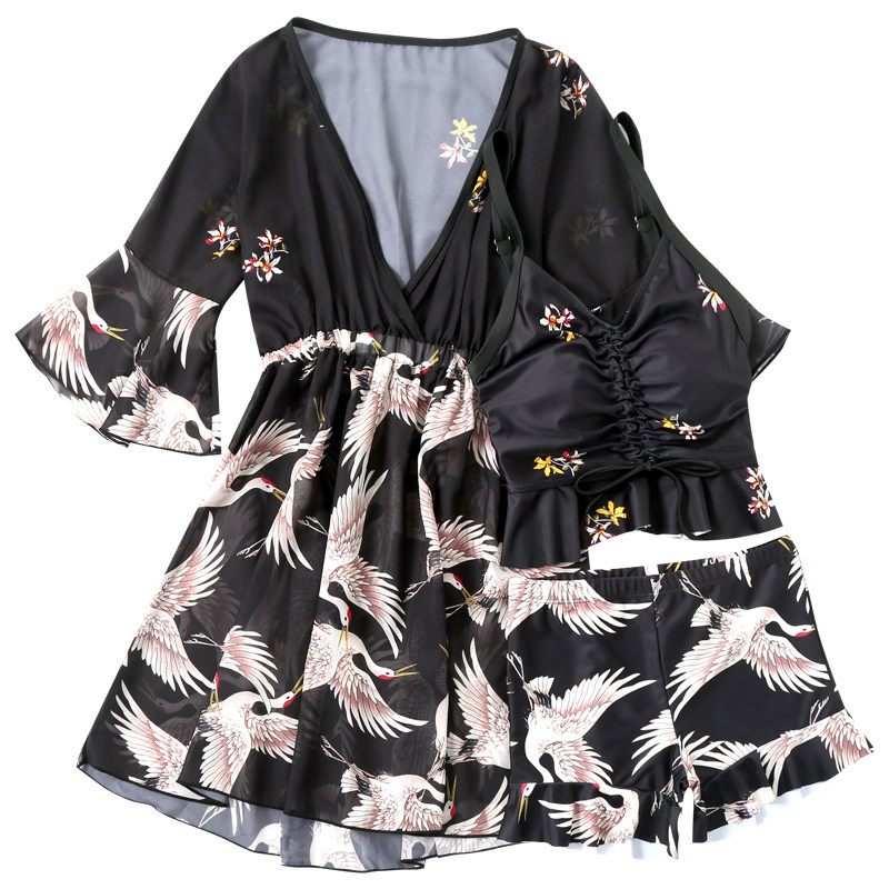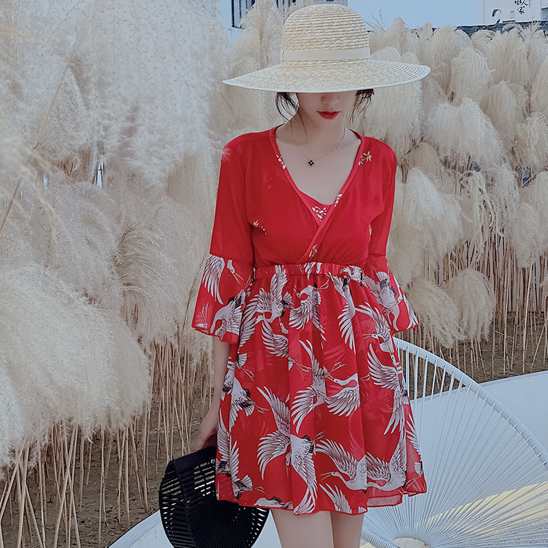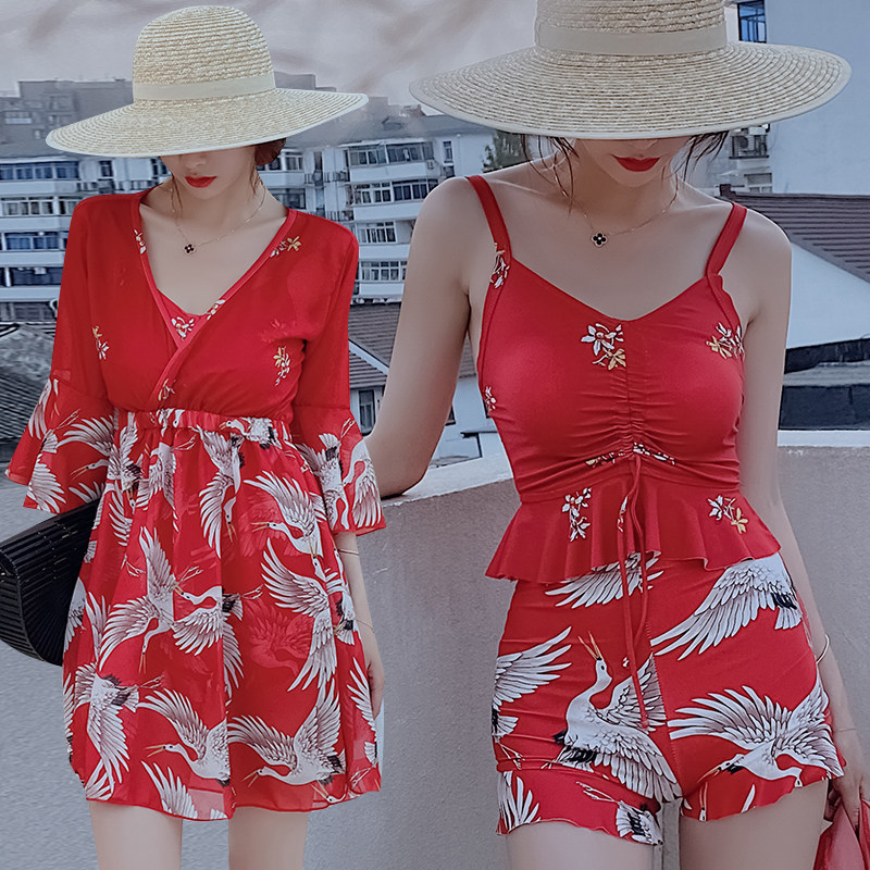 Step up the code swimsuit woman fat mm200 catty Belly Button Slim Conservative Loose Skirt Style Two-piece Three Sets Bathing Suit Spa