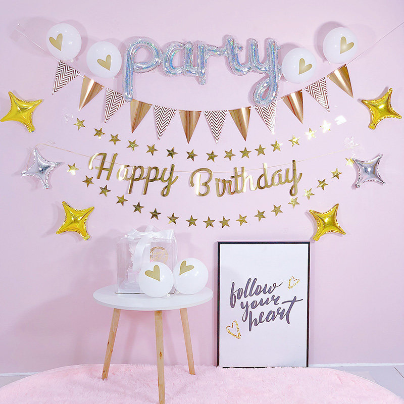 Children's birthday decoration party scene decoration theme girl boy baby year old balloon background wall decoration