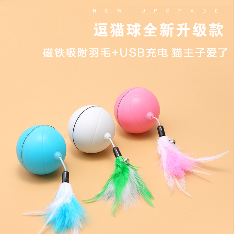 White automatic cat ball (send electronic) high-end version single laser feather accessories pink automatic cat ball (send electronic) blue automatic cat ball (send electronic) upgrade USB charging from