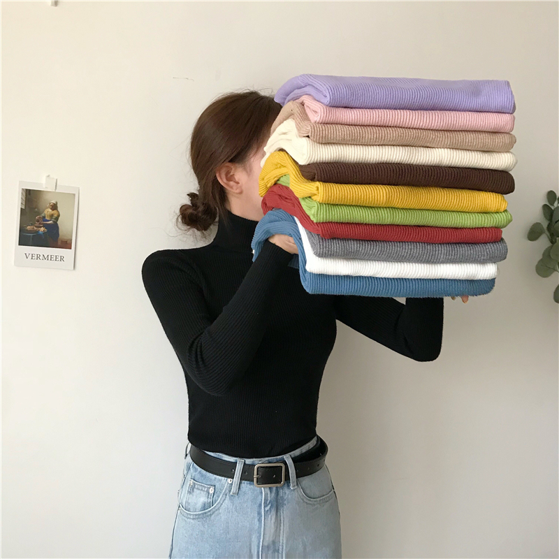 Black New High Neck Knitted base shirt Autumn and Winter Women's Sweater Slim Spring and Autumn Joker