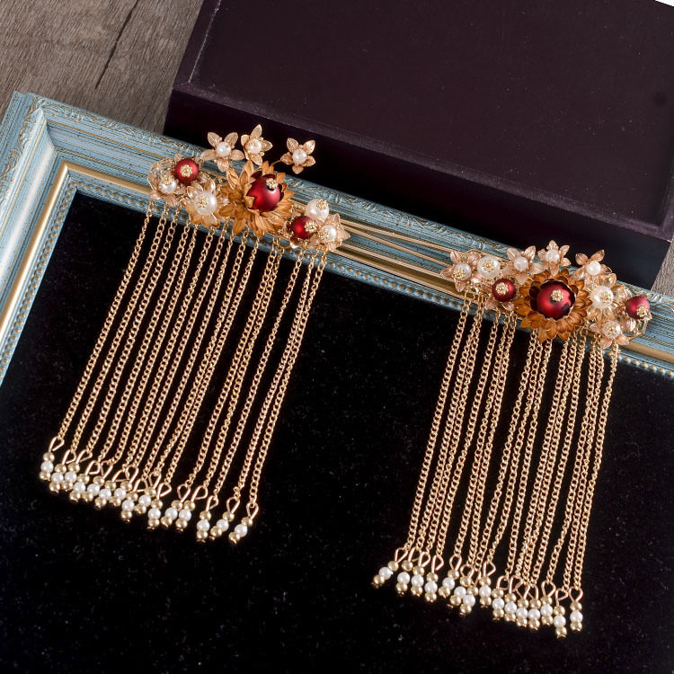 Hairpin set, combing, tassel hairpin, Hanfu mail, gold classic, with period costume, Chinese vintage headdress