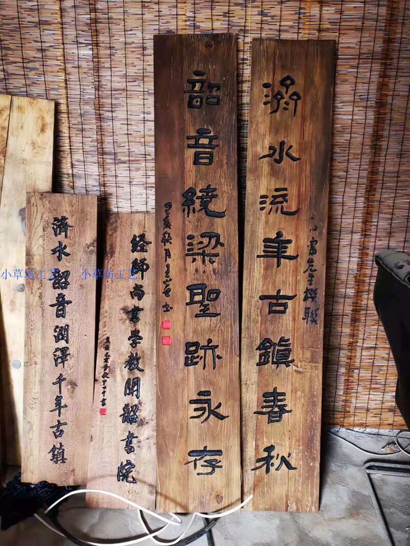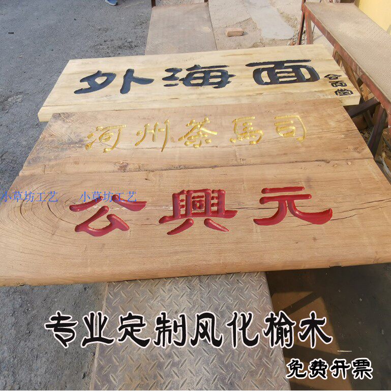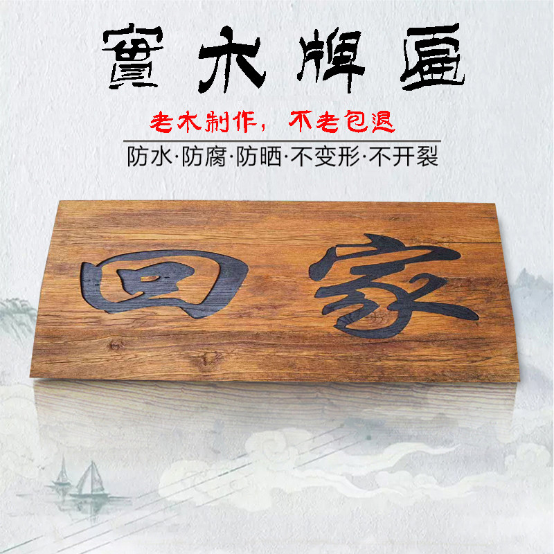 Solid Wood Plaque Sign East Yang Wood Carving Weathered Old Elm Wood Old Door Panel Retro Nostalgia Shop Door Head Decorative Plaque