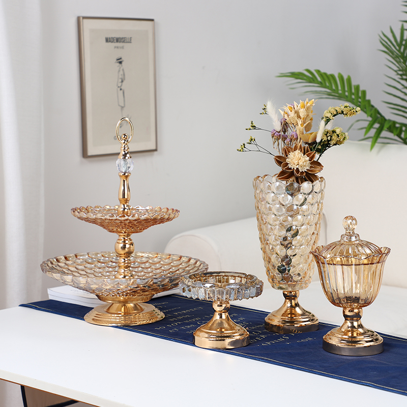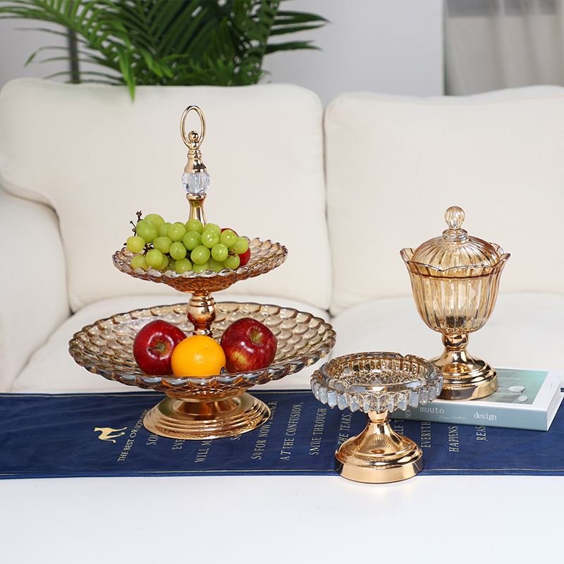 European style double glass fruit plate Creative Home modern living room fruit plate tea table ornaments luxury crystal candy Basin