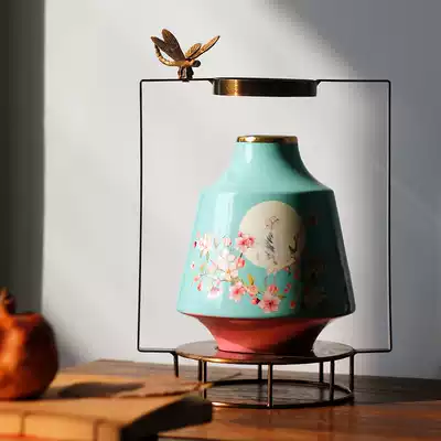 New Chinese style American light luxury creative ins living room entrance Wrought iron ceramic vase decoration craft gift decoration flower arrangement decoration