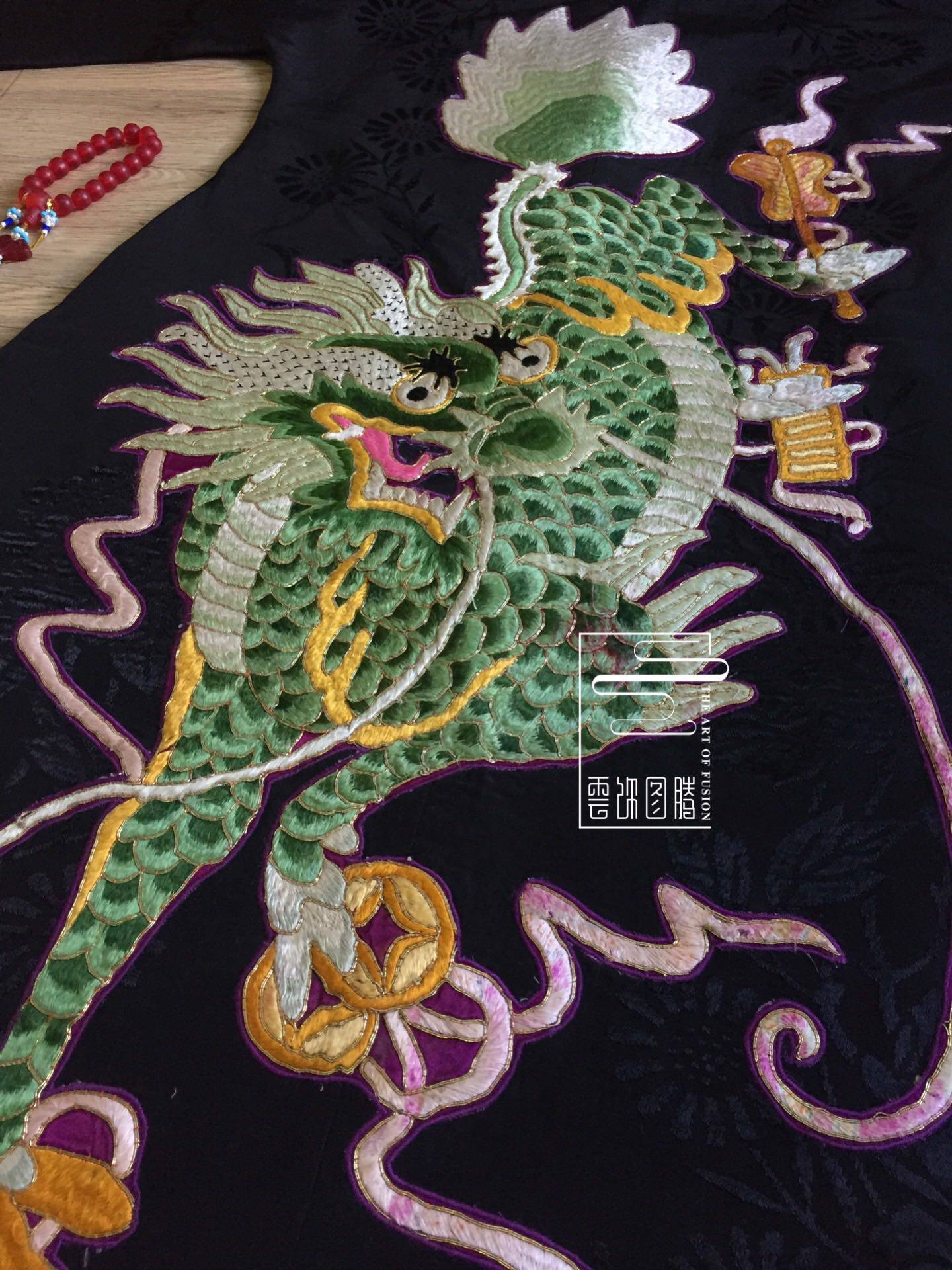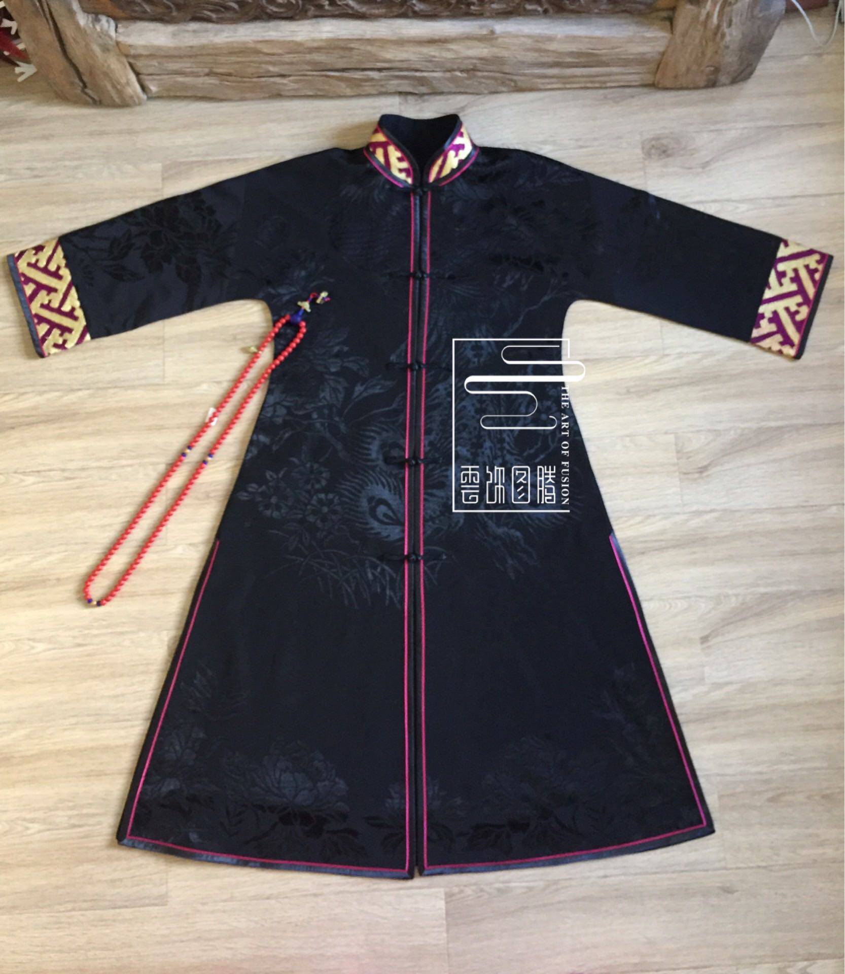 Cloud decoration totem original design Women's outerwear Old embroidery hand embroidery Old satin Unicorn spit book folio open collar top