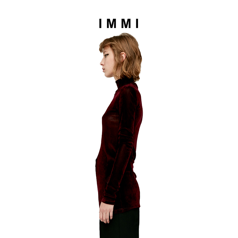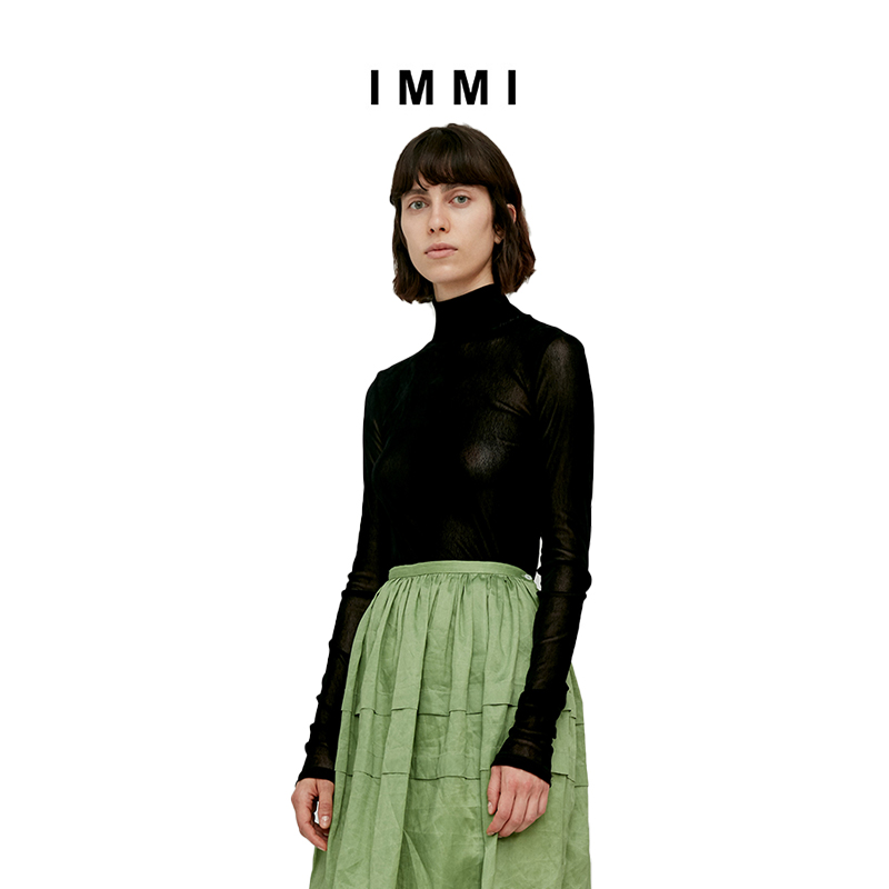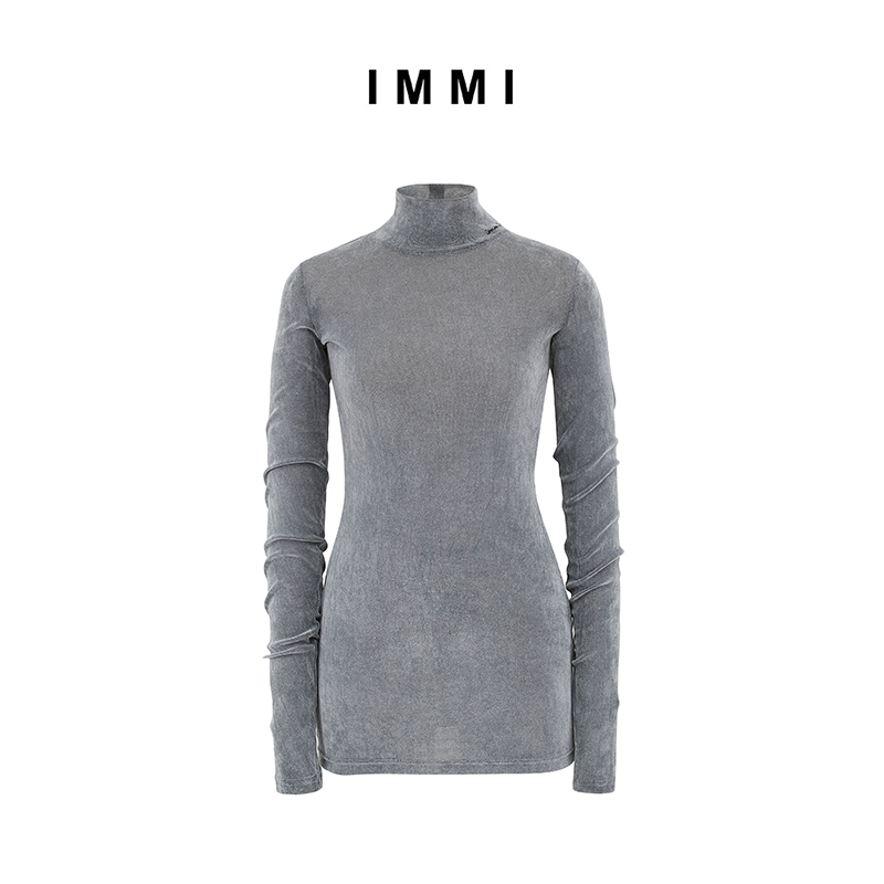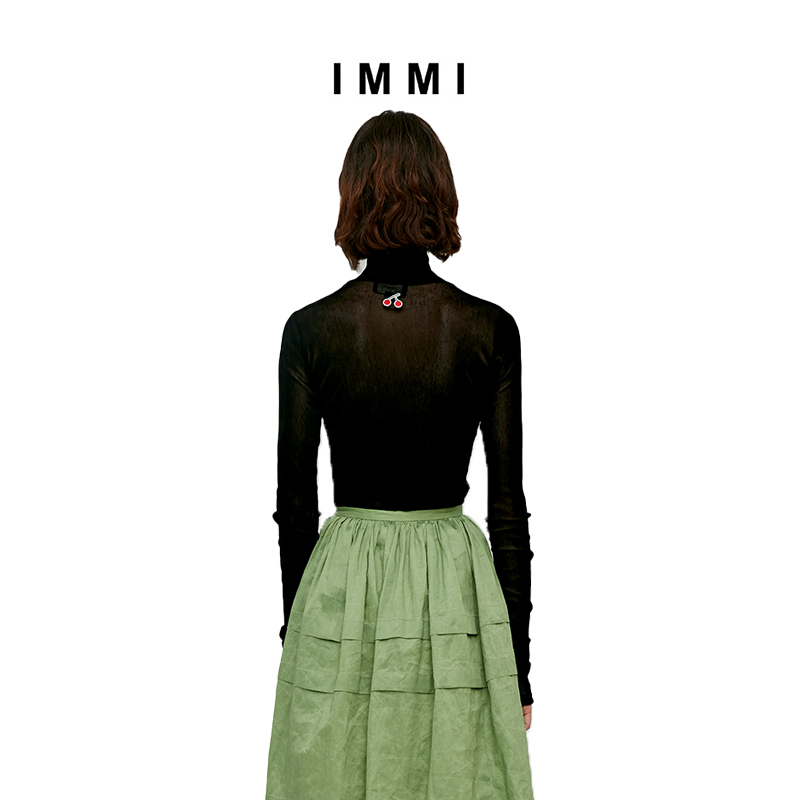 (designer brand IMMI) pure color flannel cherry embroidered semi-high collar mesh yarn undershirt 192TP007B
