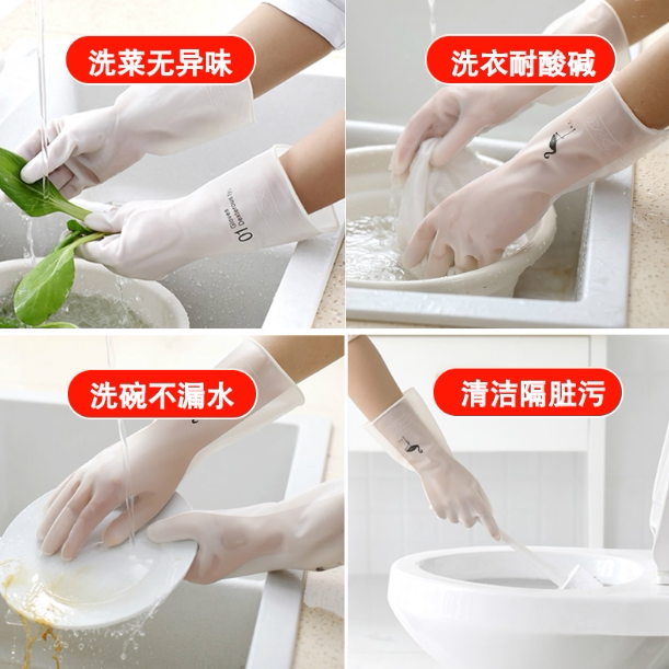 Home waterproof non-slip dishwashing gloves plus velvet warm rubber gloves Household kitchen laundry bundle mouth brush bowl gloves