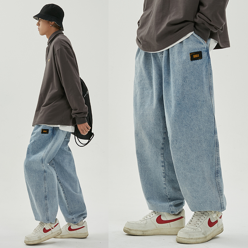 Mr. Gangnam Spring Summer New Day Department Washing Tooling Loose straight drum Jeans Male Tide Cards Casual Broadlegged Jeans
