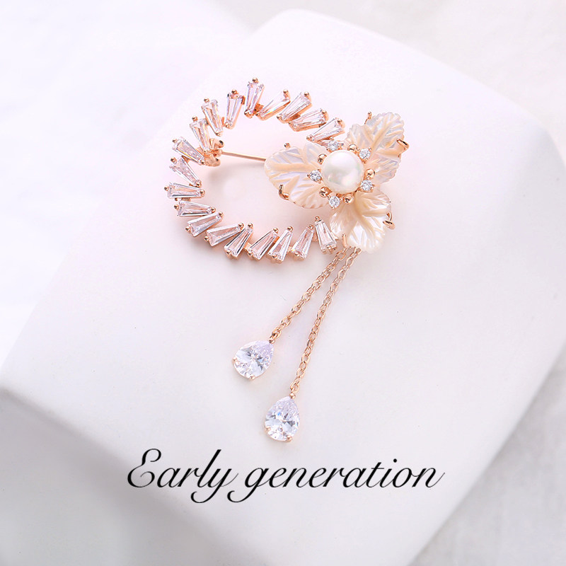 Senteal petal stream Su seashells Chest Needle Breast plethora Classic Neckline 100 Hitch Fashion Coat Do N't Pin Temperament-Taobao