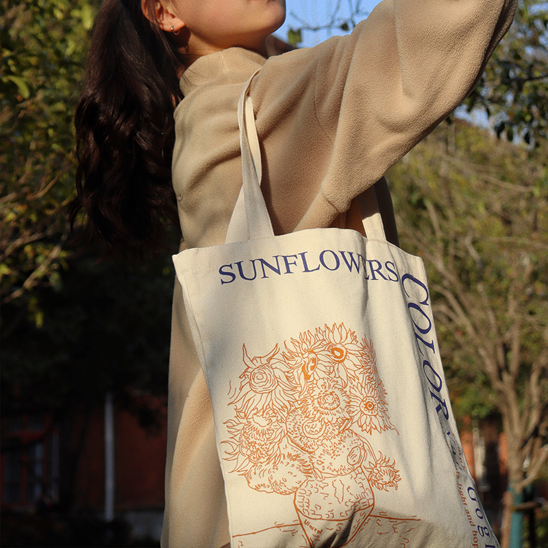 Alien Van High Sunflower Sails Cloth Bag Original Design Female Canvas Bag Art name Painting Oil Painting Single Shoulder