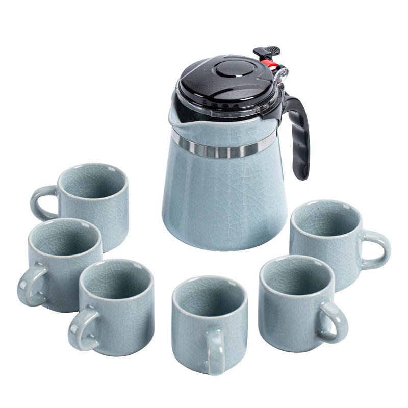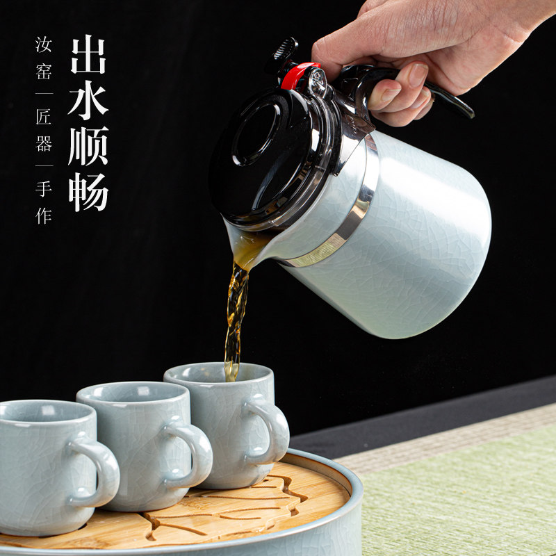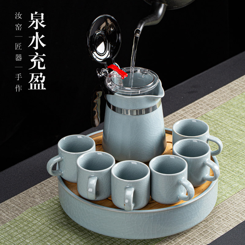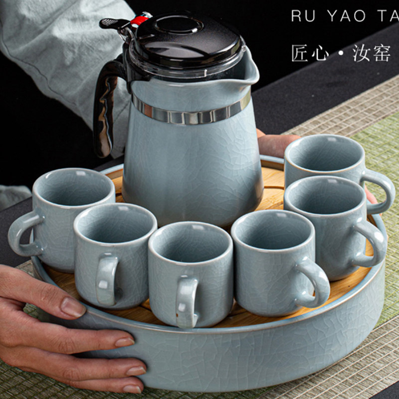 Three Sheng-Ruku "Floating Kettle" 580ml Three Sheng-Ruku "7 set of Floating pots" 6 cups Three sheets - Ruku "7 set of flutters" 6 cups - gift box Three sheets of ru kiln