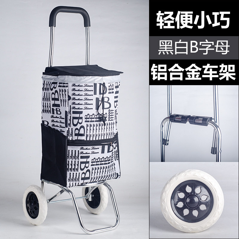 Shopping cart aluminum alloy light grocery shopping cart small pull cart luggage folding elderly pull rod portable household trolley