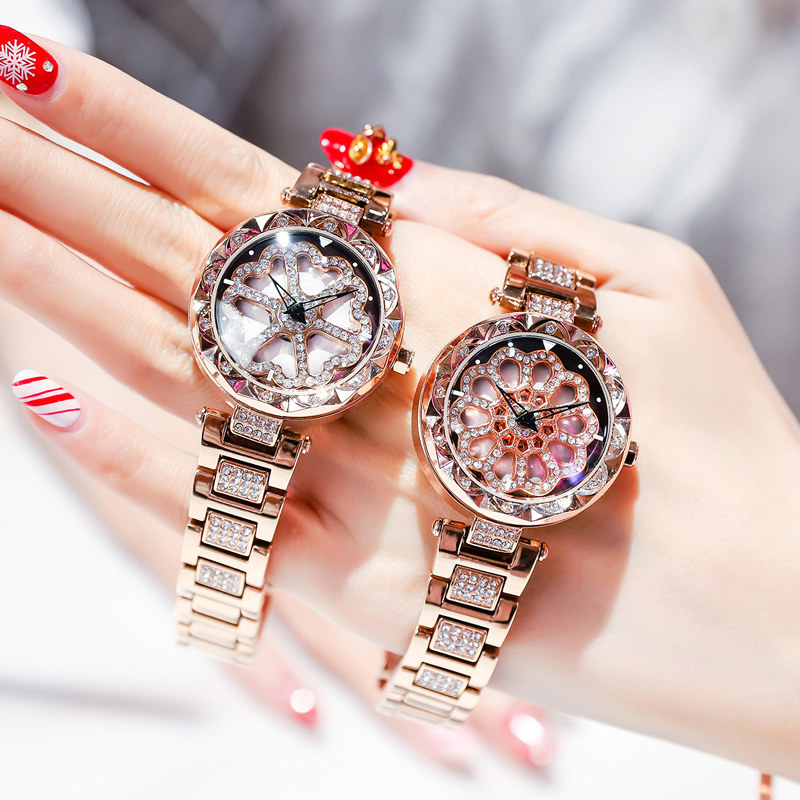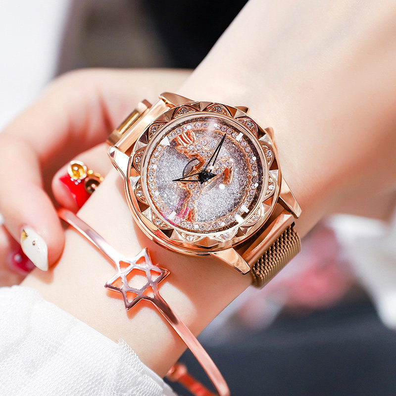 (Time to run - white belt) (High Edition - Nippon Seiko Movement) Send Bracelet (Steel Belt Diamonds) Heart Shape - Rose Gold (High Edition - Japan Imported Seiko Movement) (Time to Run