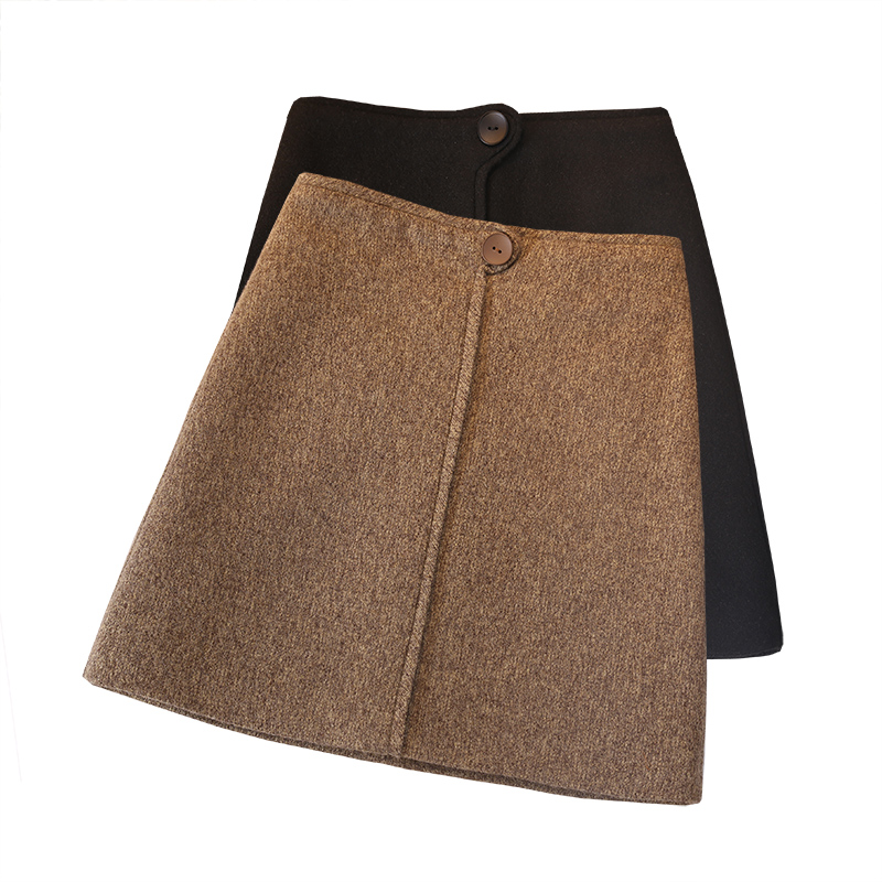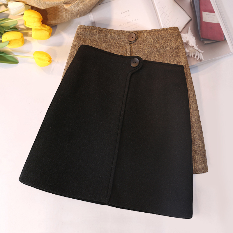 Woolen short skirt women's 2021 new autumn and winter black package hip skirt a-line high waist Hong Kong flavor all-match one-step skirt