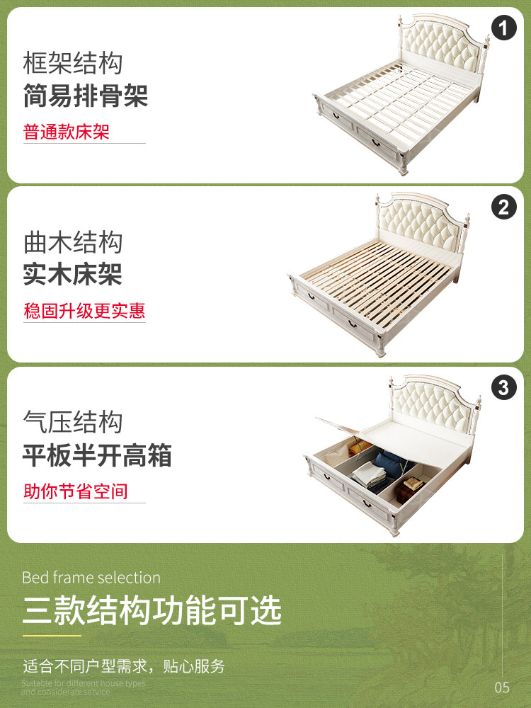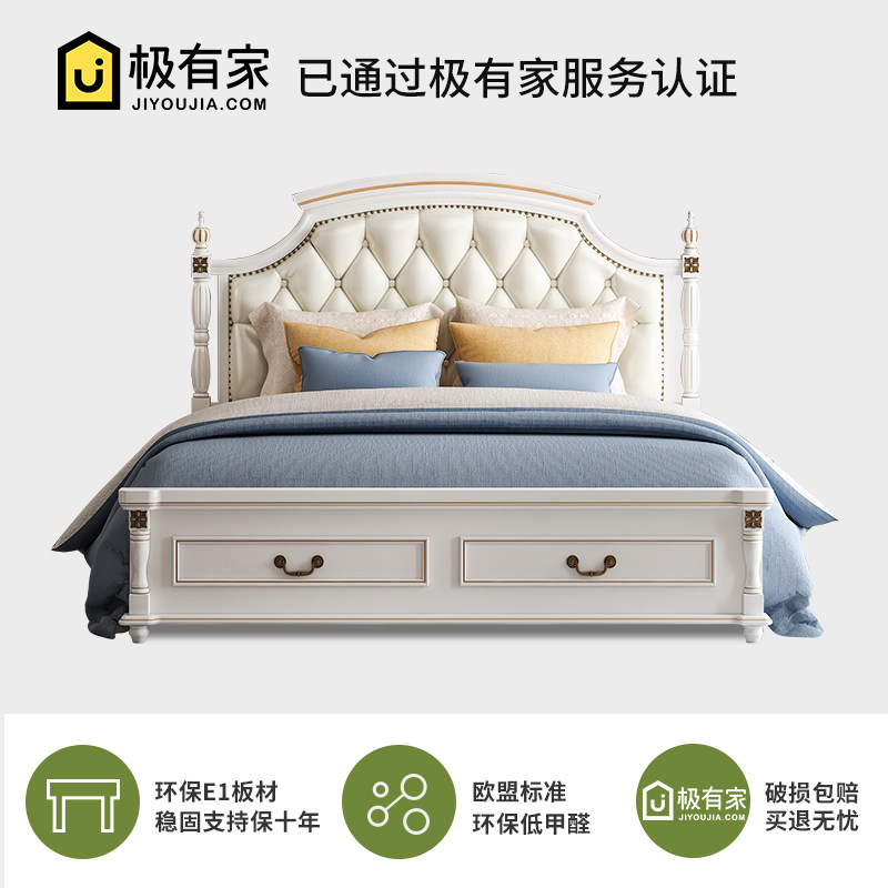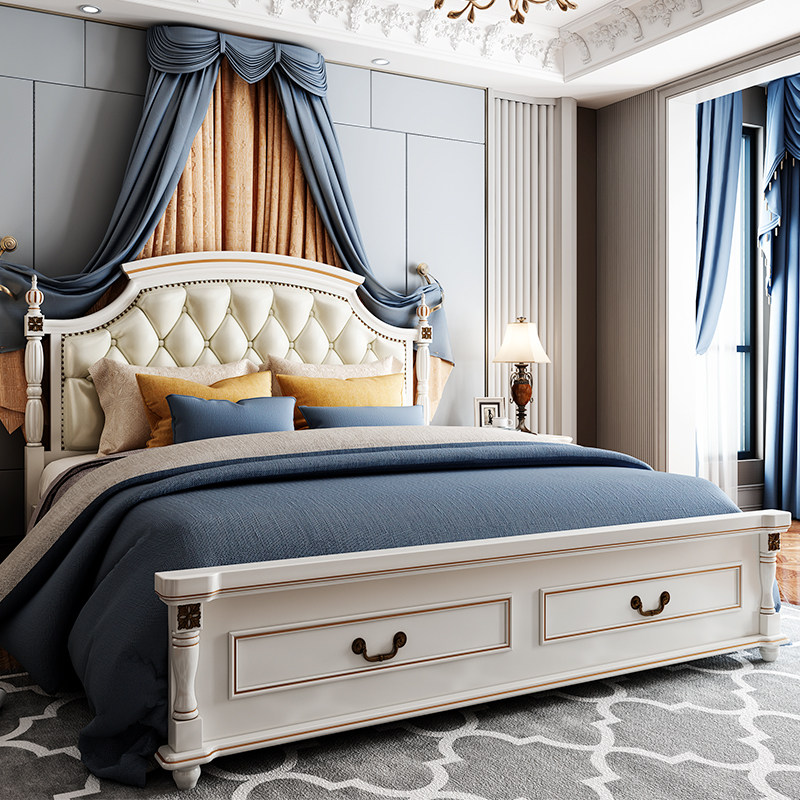 (Clearance)American bed Light luxury bed Solid wood bed 1 8 meters wedding bed Master bed Modern simple European bed