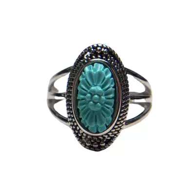 Qin Chu original mine turquoise ring women's high porcelain blue gesang flower ring surface 925 sterling silver inlaid living mouth jewelry