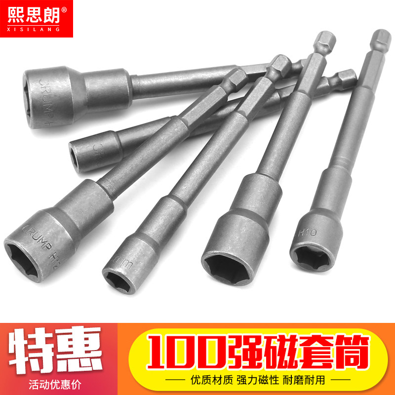 Wind batch magnetic sleeve inner hexagonal lengthening batch head electric drill socket outer hexagonal socket head strong magnetic electric wrench