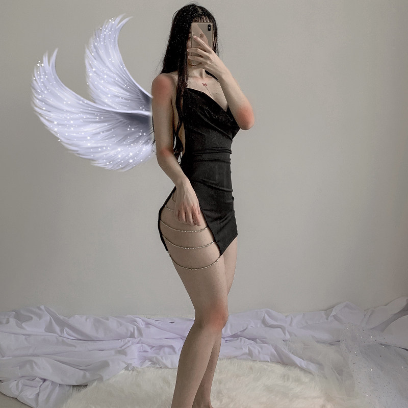 Liao Han products: sparkling drill club queen side split strap backless sexy hip skirt nightgown