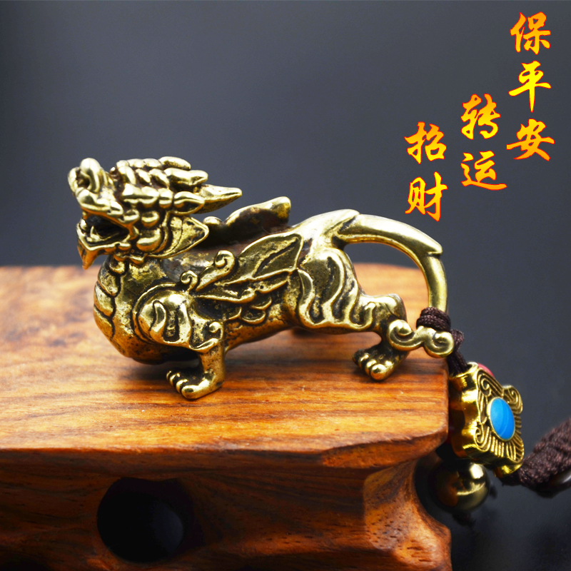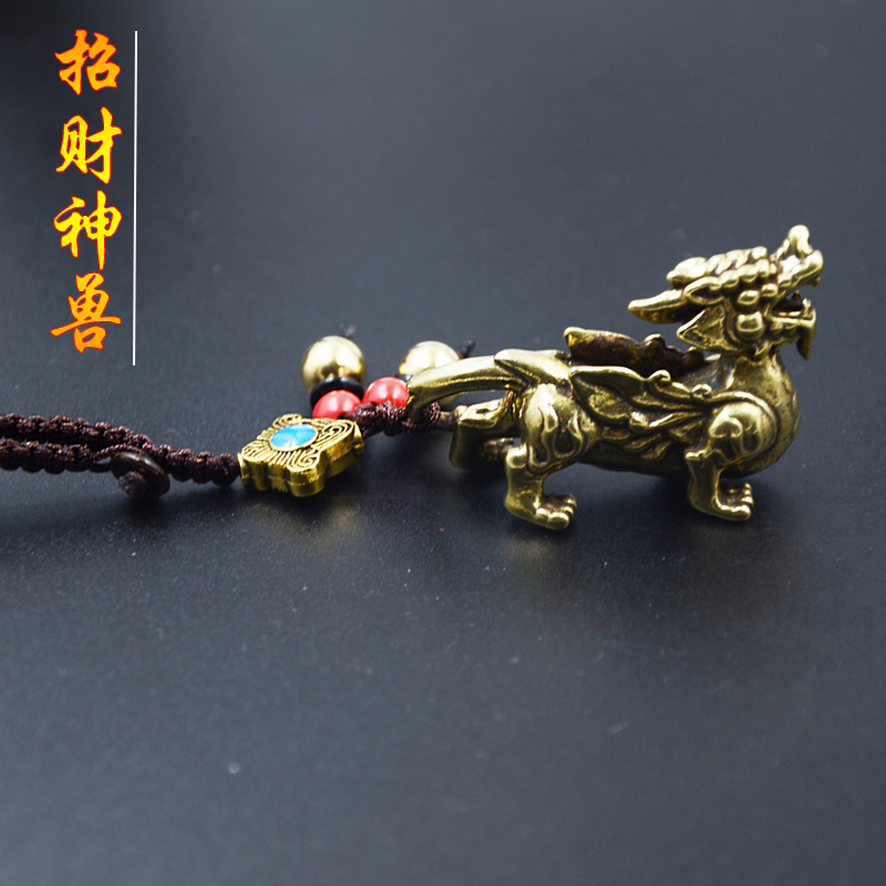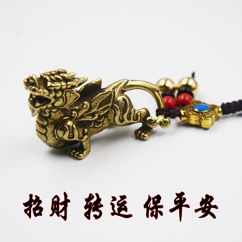 Chinese style vintage brass Unicorn keychain key ring Hand woven rope Lucky Nafu Bao Ping car key