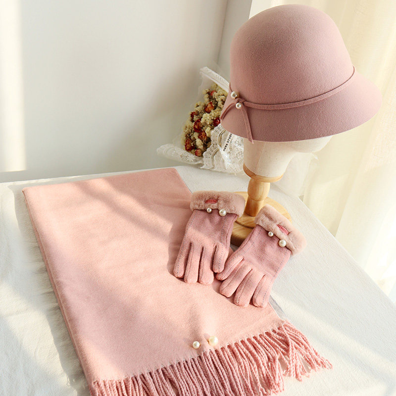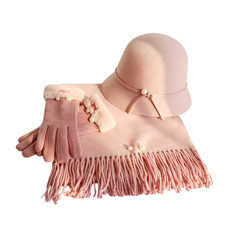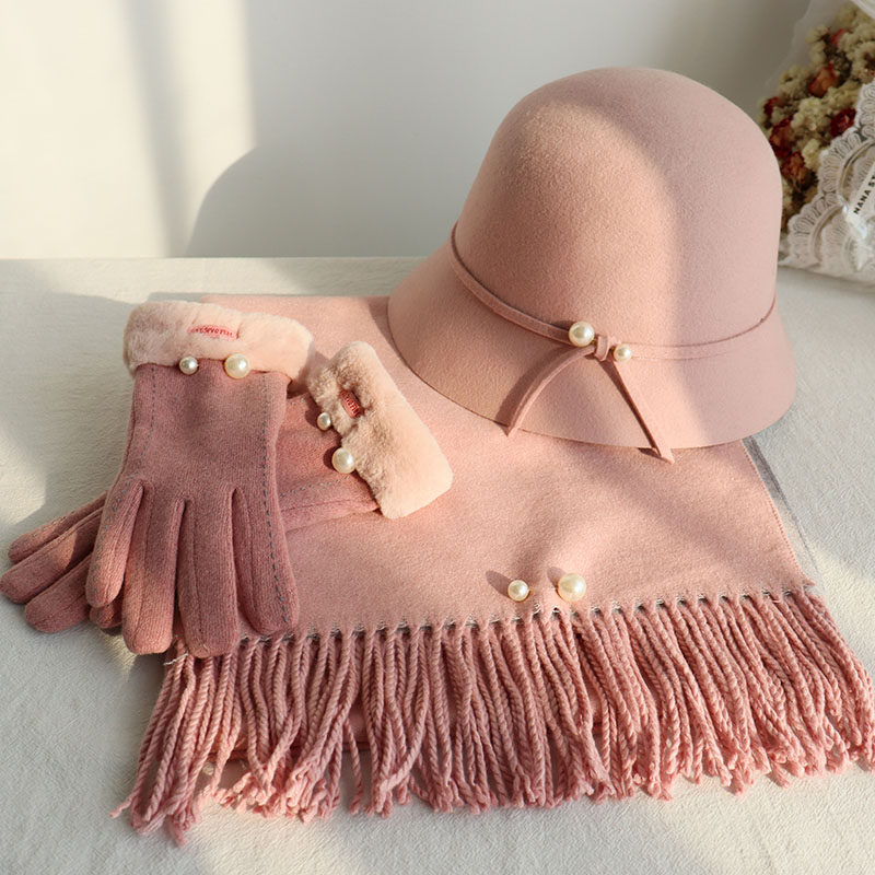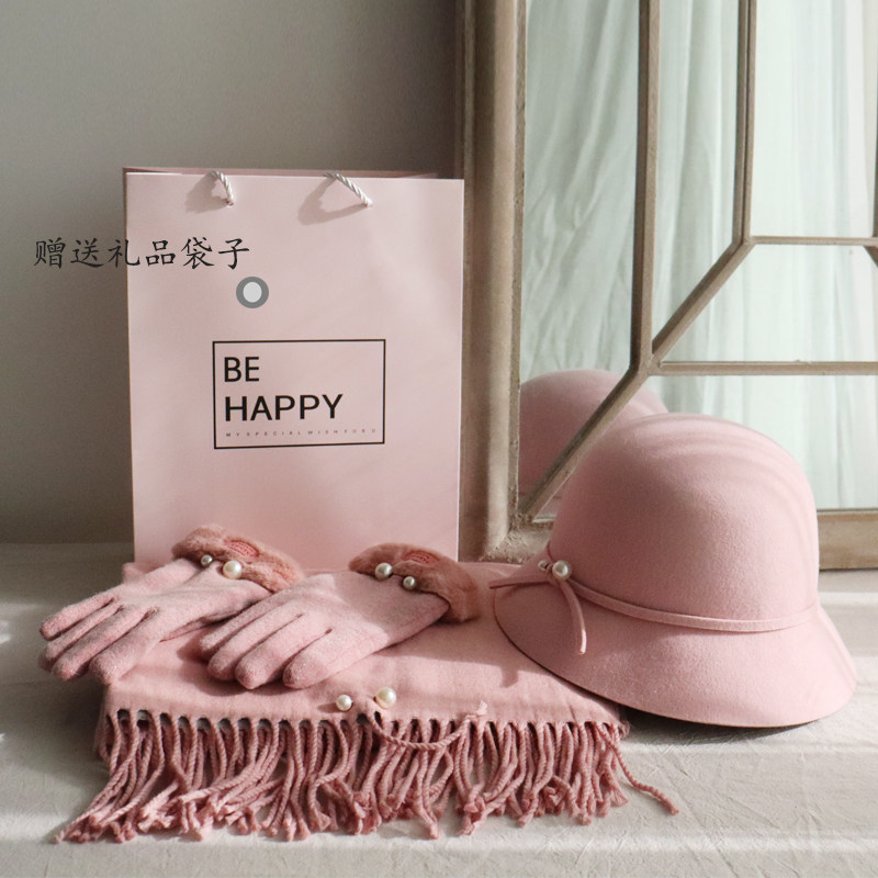 2022 New Autumn Winter Hat Scarf Glove Three-Piece Set Women Korean Version Cute Pink Three-Piece Set High-end Gift