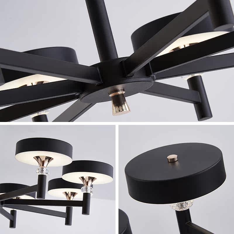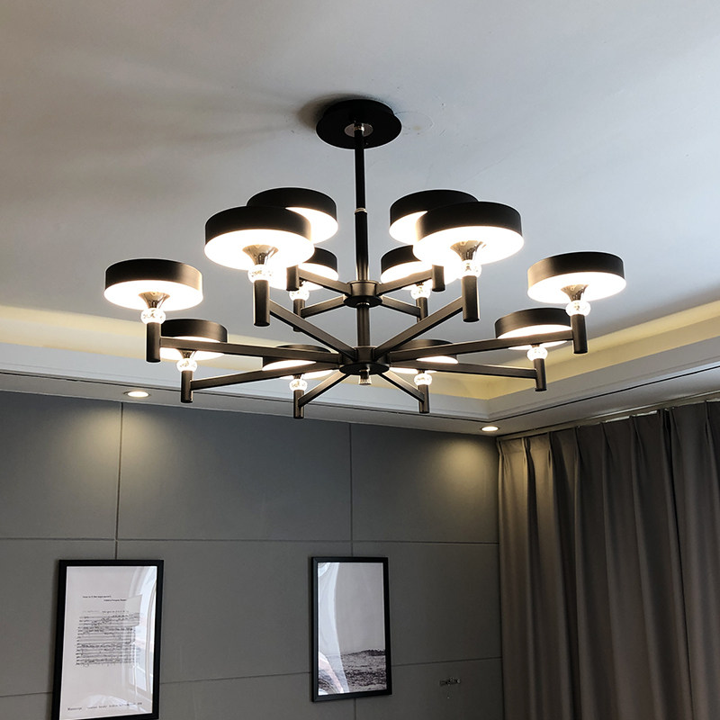 Modern minimalist living-room chandelia three-color dimming bedroom dining room lamp cozy light and luxurious atmosphere new Nordic wind black