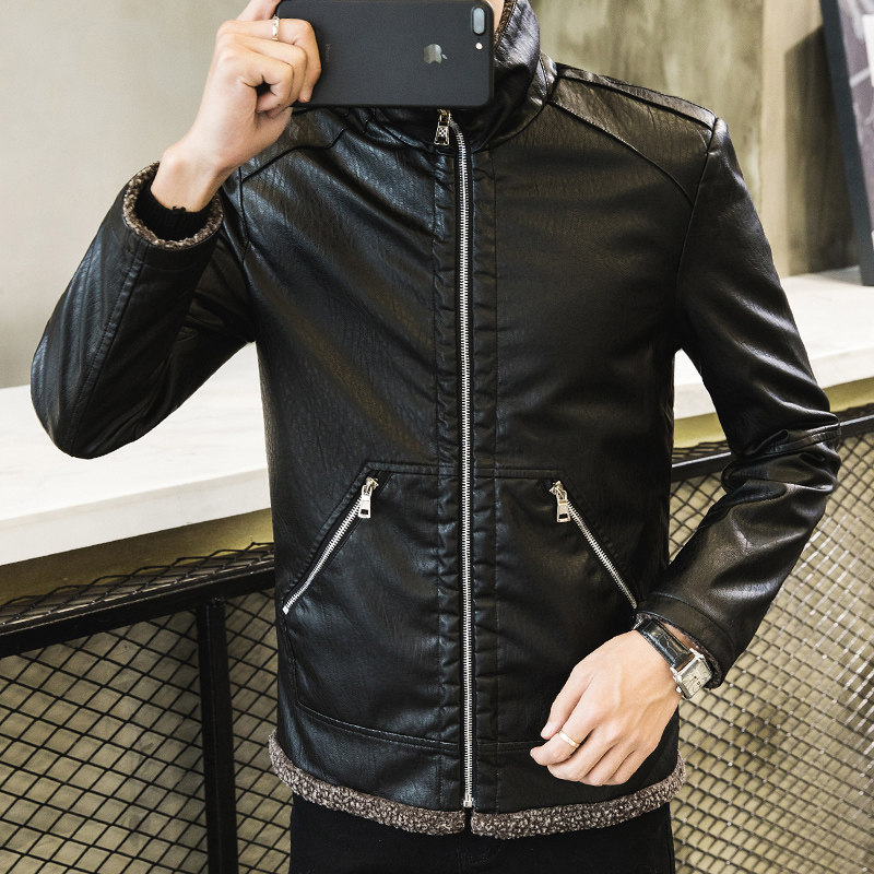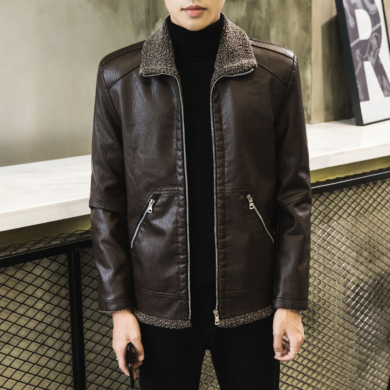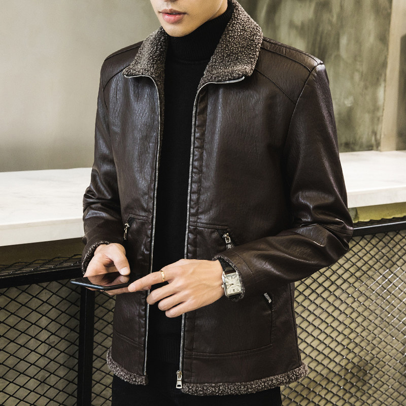 Autumn Winter Coat Men's Jacket Clothes Korean Version Trend Locomotive Tooling Tide Card Leather Coat Large Size Windproof Plus Suede Thick