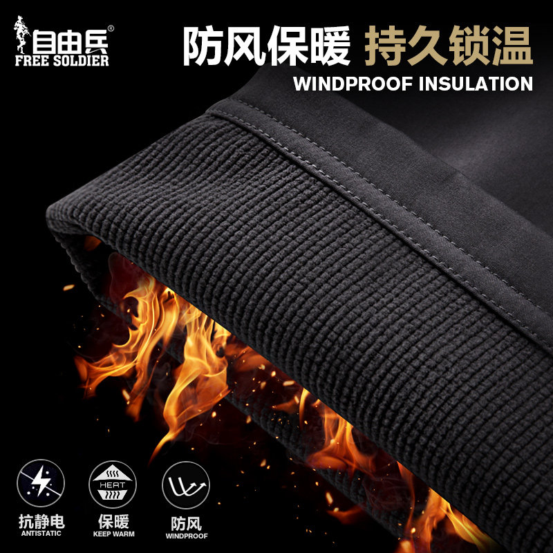 Free soldier autumn and winter men's broken peak fleece soft shell pants outdoor warm mountaineering pants thickened velvet tactical pants
