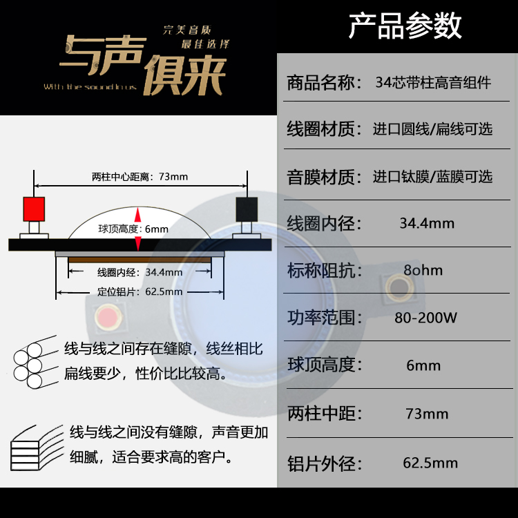 Imported blue film 34 4mm alt tone coil 34 Core Imports Titanium film 34 5 Stage horn Sound Round Flat Coil