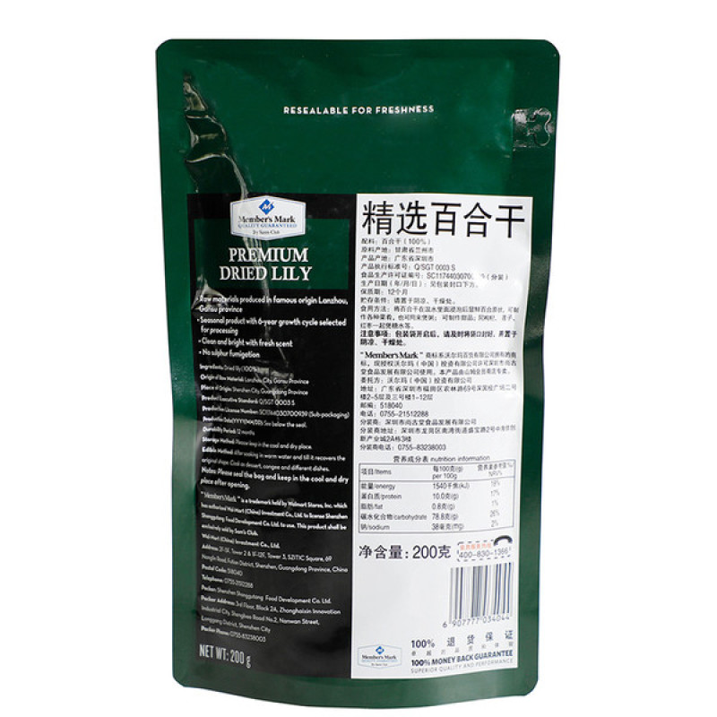 Sam's member store Selected Dried Lily 200g authentic sulfur-free North and South dried goods Silver fungus Lotus seeds Wolfberry sugar water