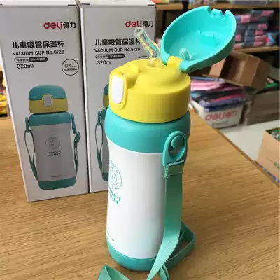 Deli children's thermos cup with straw Stainless steel primary school kindergarten multi-purpose direct drinking pot Baby learning drinking cup